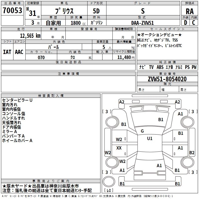 TOYOTA PRIUS S - лот 70053