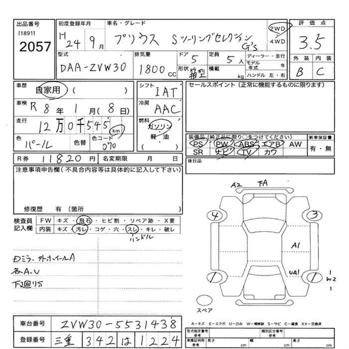 TOYOTA PRIUS S TOURING SELECTION G'S - лот 2057
