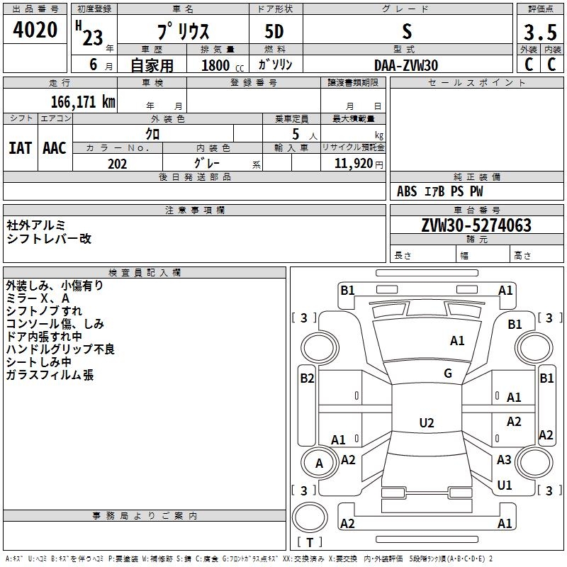 TOYOTA PRIUS S - лот 4020
