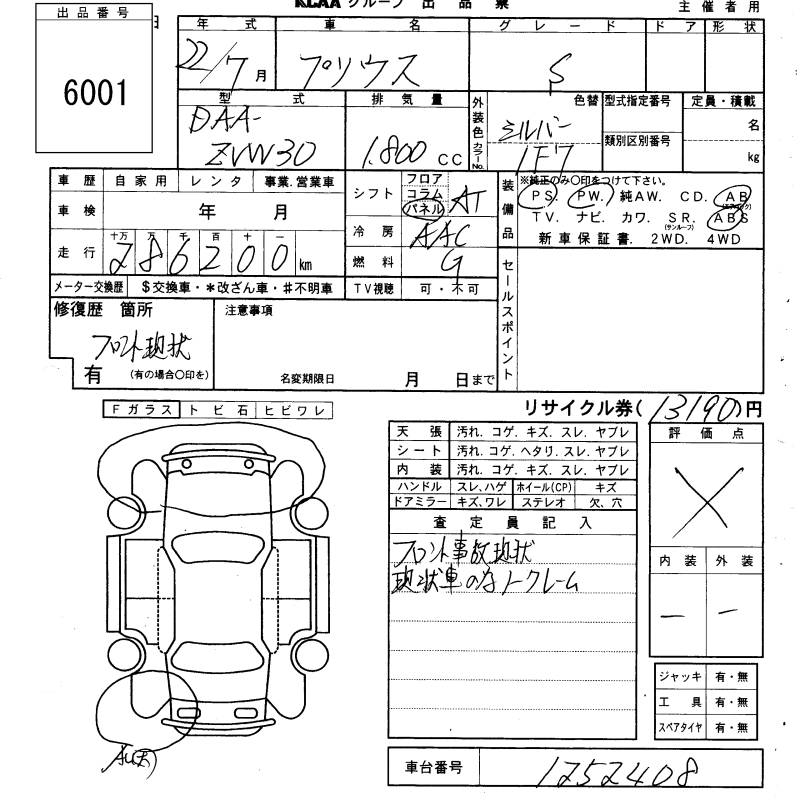 TOYOTA PRIUS S - лот 6001
