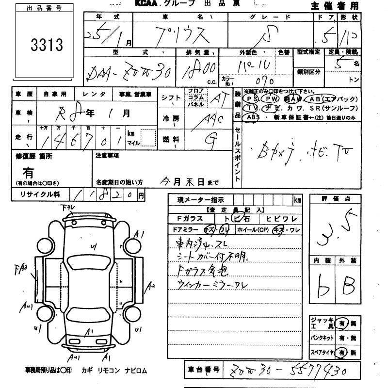 TOYOTA PRIUS - лот 3313