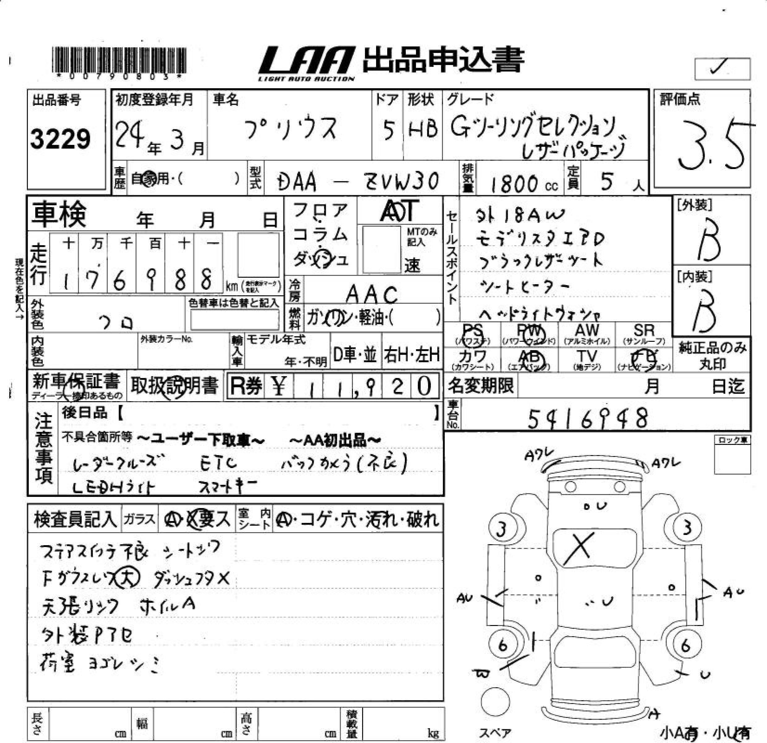 TOYOTA PRIUS - лот 3229