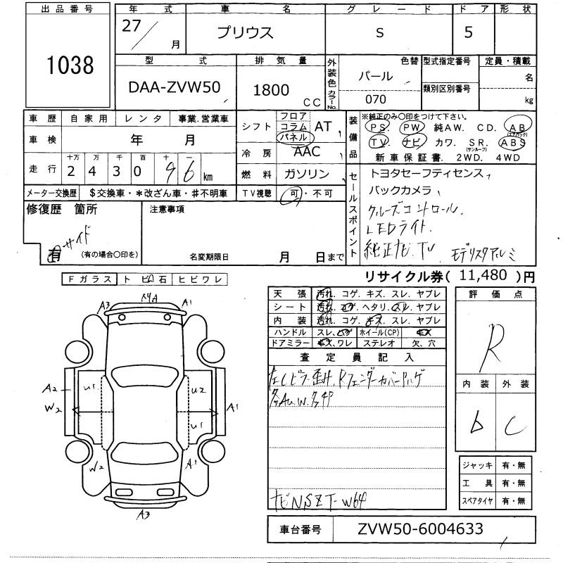 TOYOTA PRIUS - лот 1038
