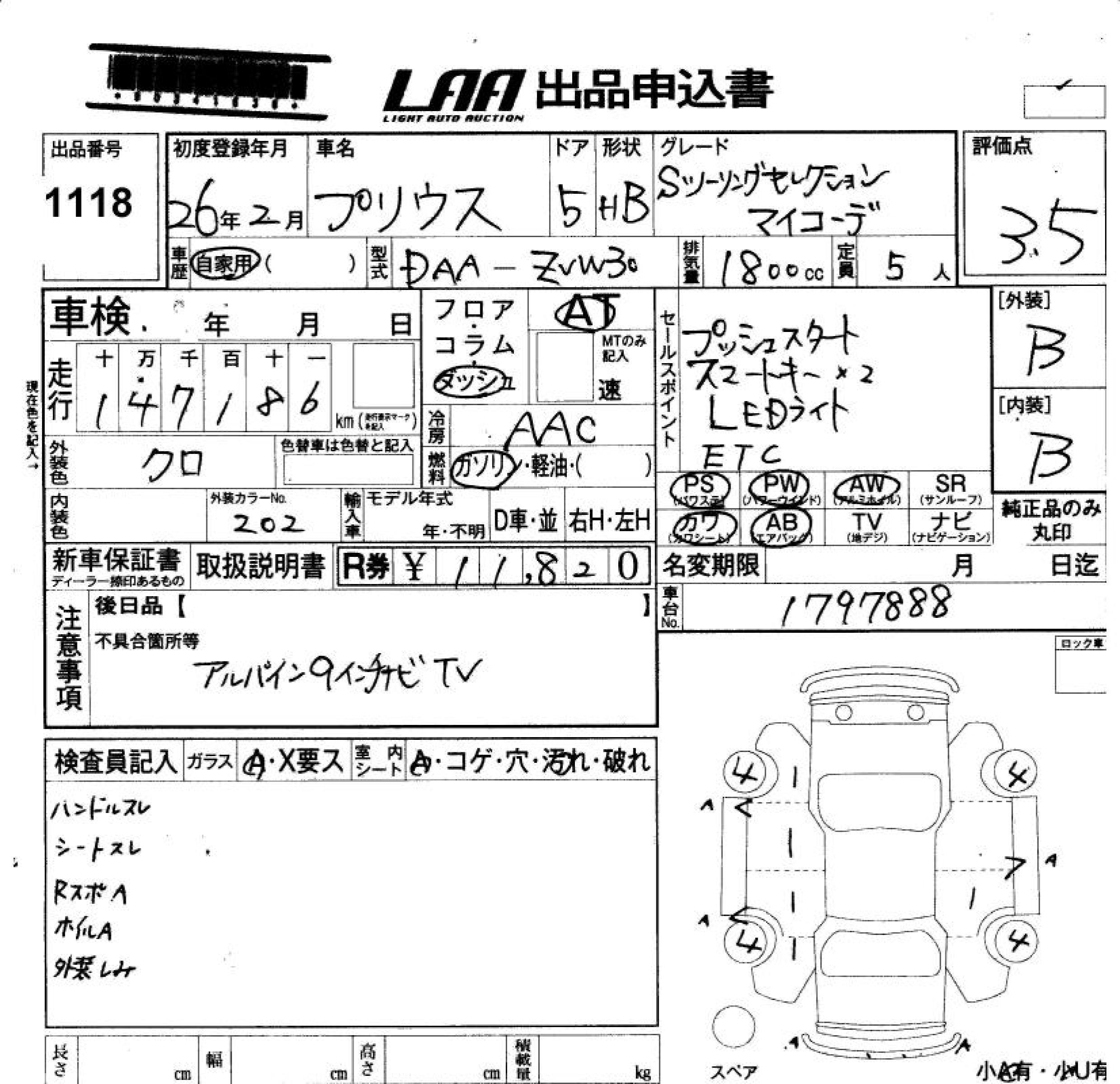 TOYOTA PRIUS - лот 1118
