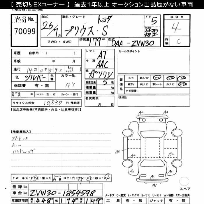 TOYOTA PRIUS S - лот 70099
