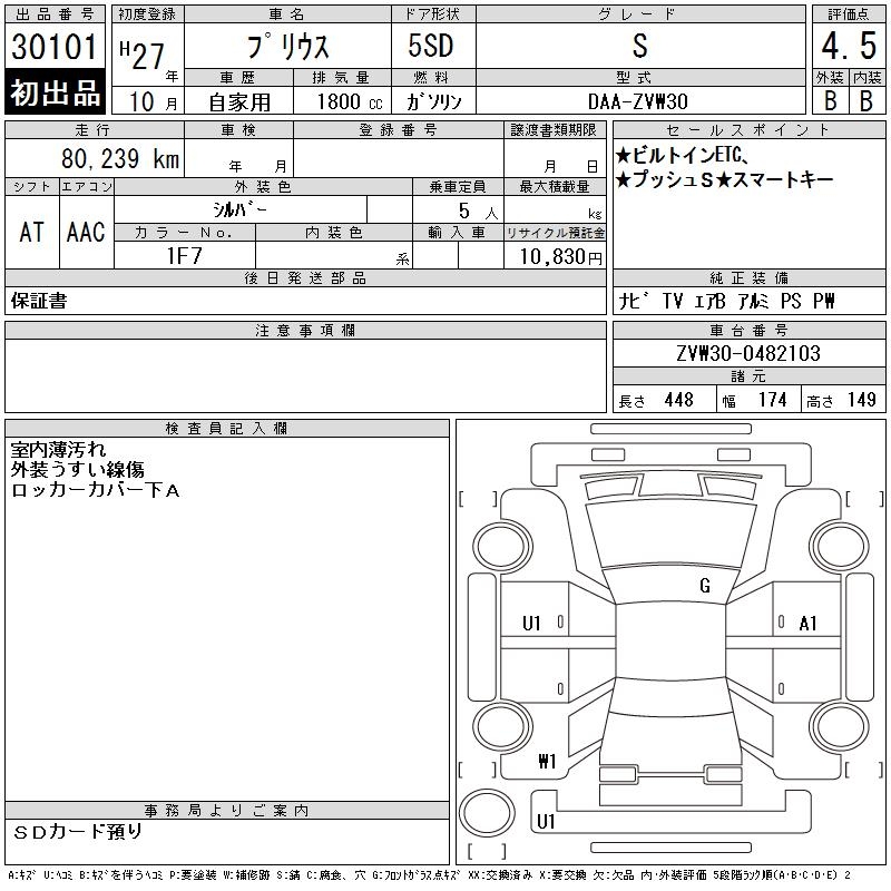 TOYOTA PRIUS S - лот 30101
