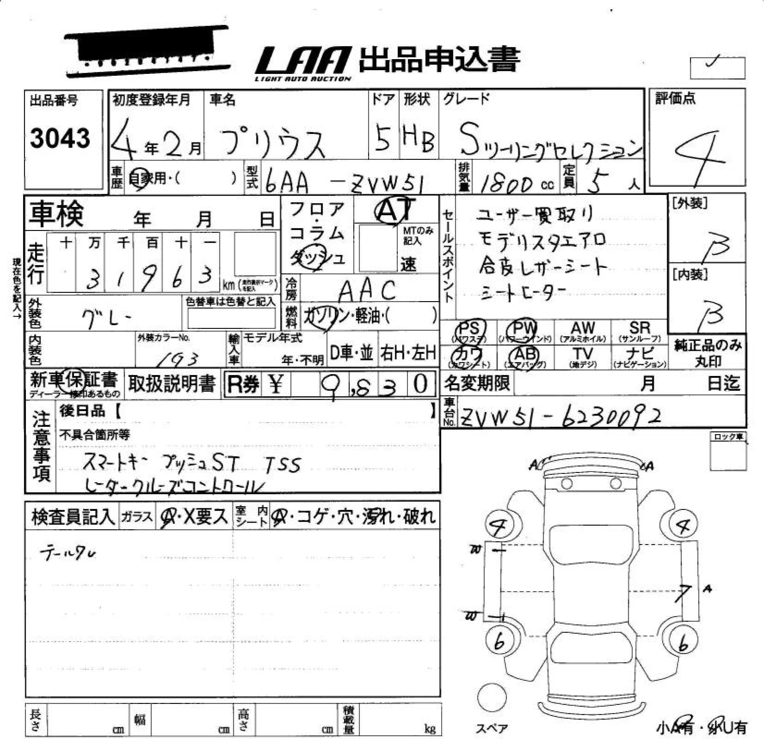 TOYOTA PRIUS S TOURING SELECTION - лот 3043