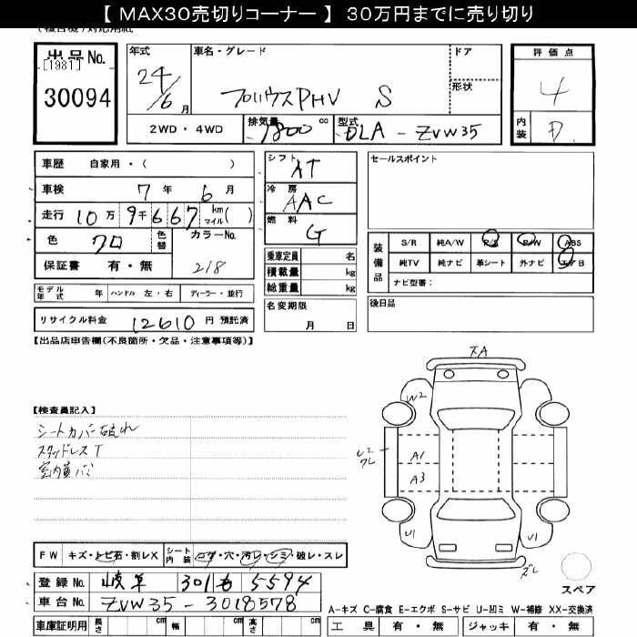TOYOTA PRIUS PHV S - лот 30094