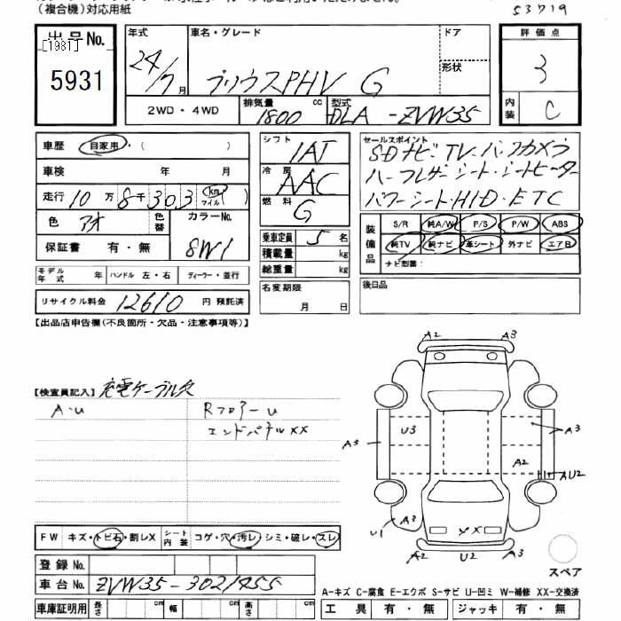 TOYOTA PRIUS PHV G - лот 5931