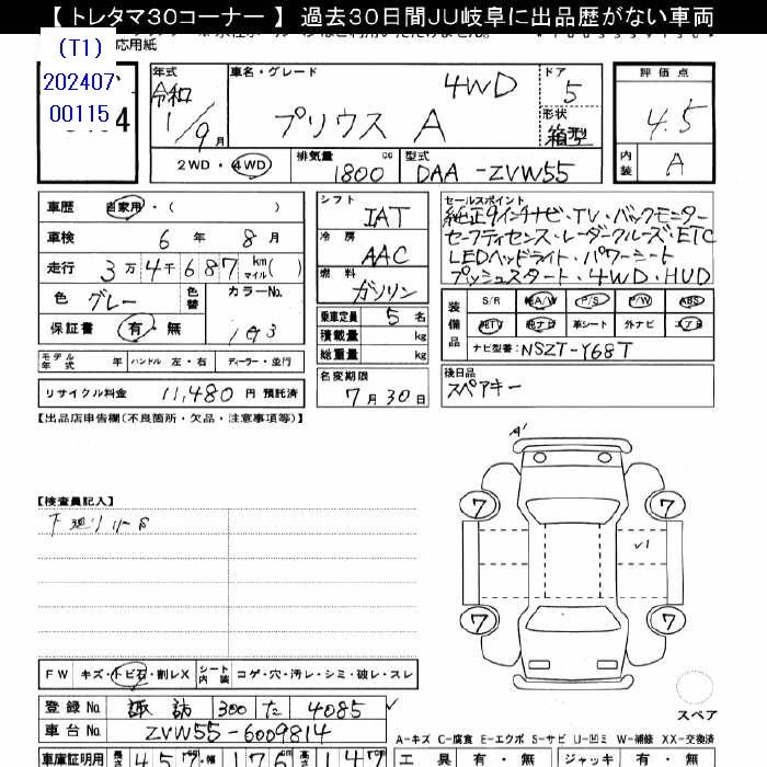 Статистика продаж TOYOTA PRIUS с аукционов Японии