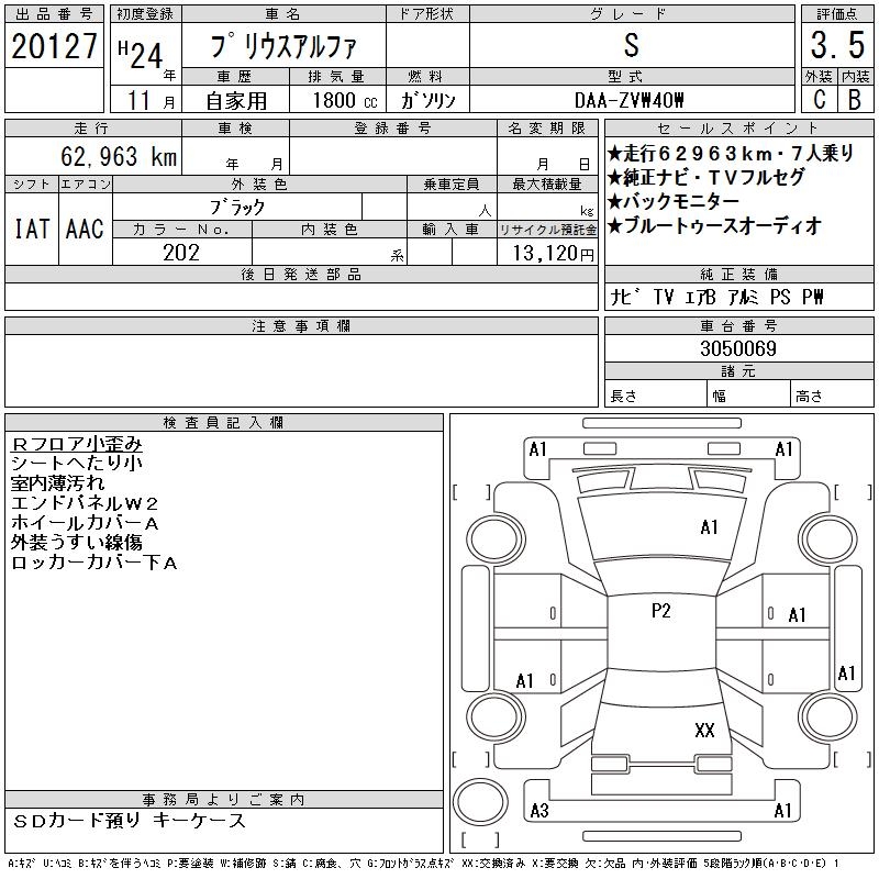 TOYOTA PRIUS ALPHA - лот 20127