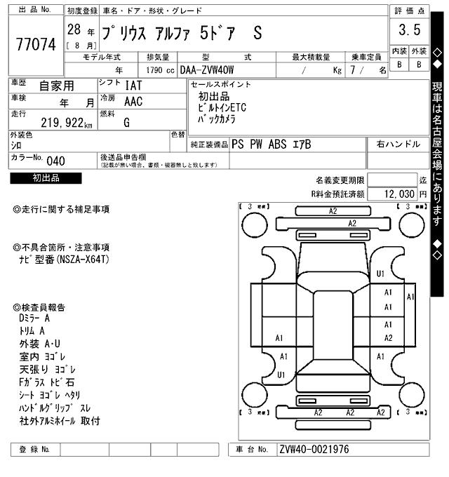 TOYOTA PRIUS ALPHA - лот 77074