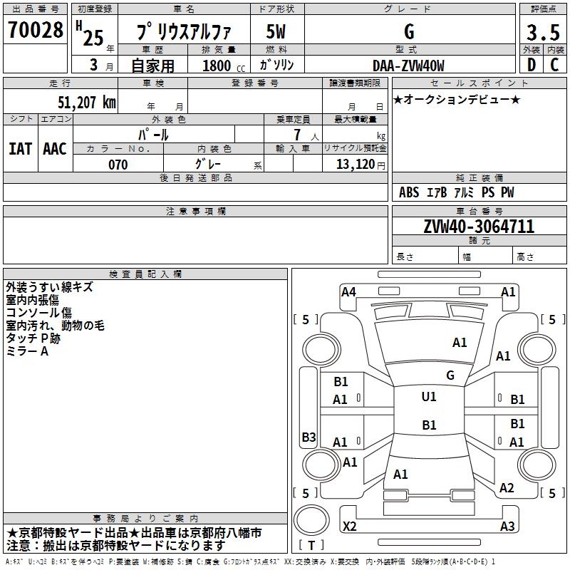 TOYOTA PRIUS ALPHA - лот 70028