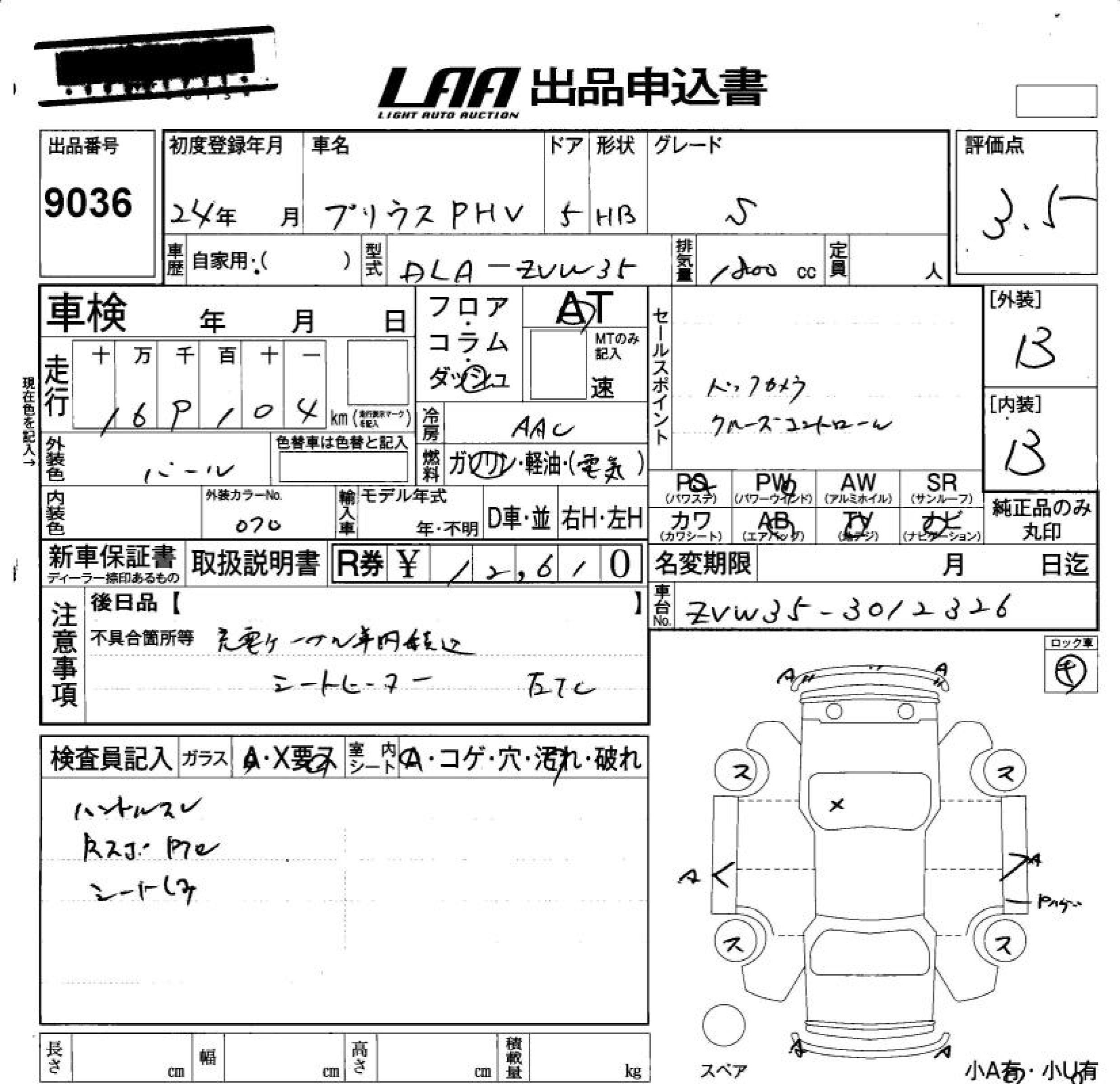 TOYOTA PRIUS PHV - лот 9036