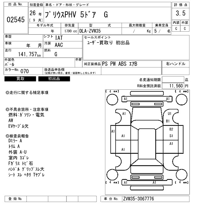 TOYOTA PRIUS PHV - лот 2545