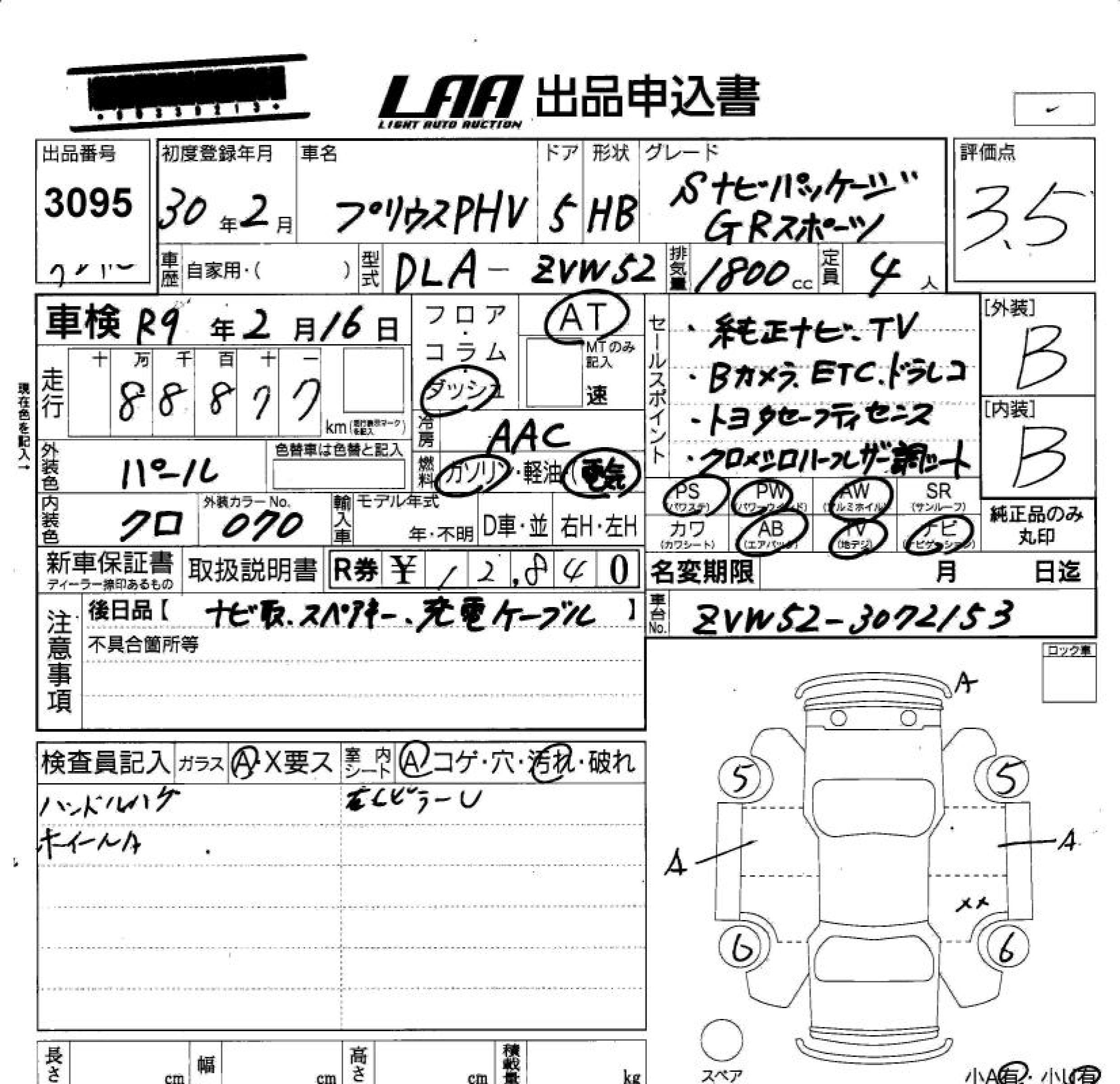 TOYOTA PRIUS PHV - лот 3095