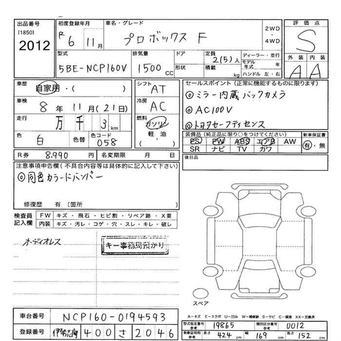 TOYOTA PROBOX VAN - лот 2012