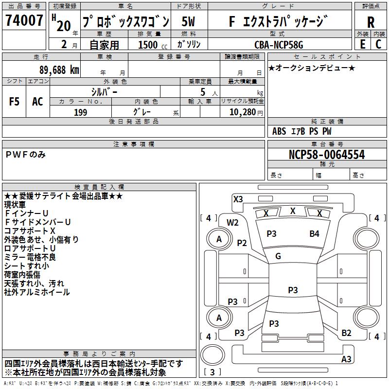 TOYOTA PROBOX WAGON - лот 74007