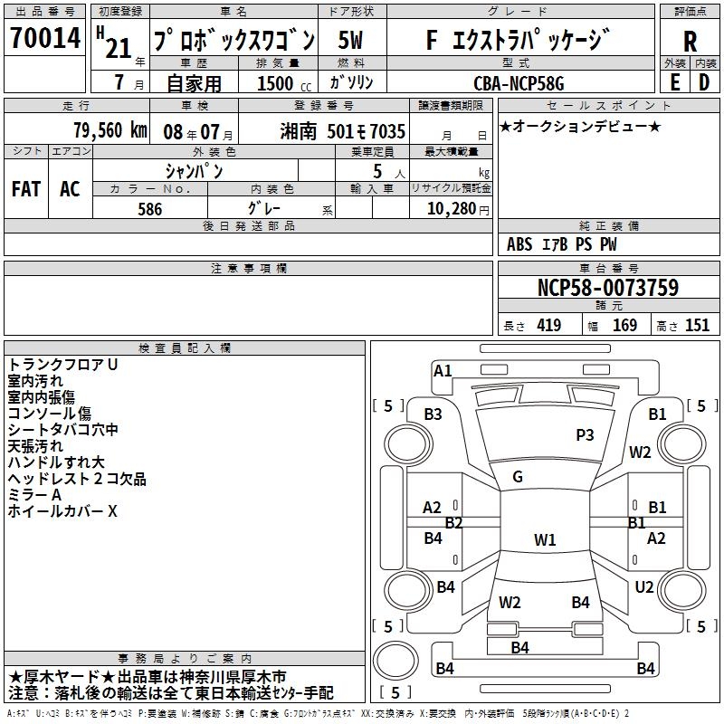 TOYOTA PROBOX WAGON F EXTRA PACKAGE - лот 70014