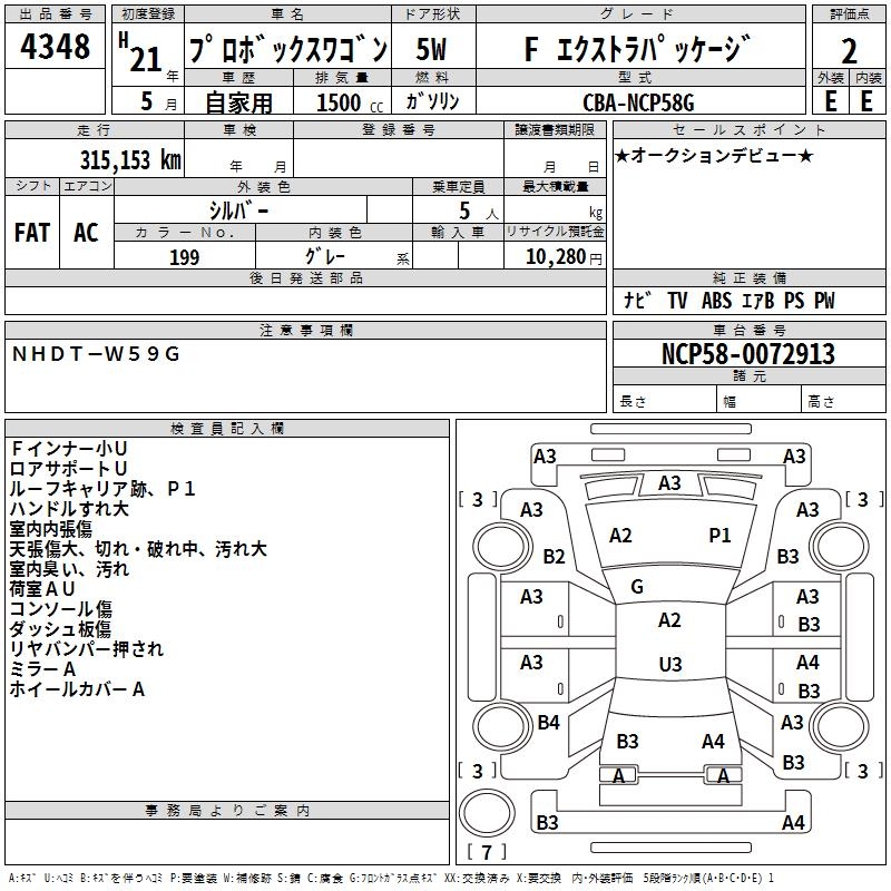 TOYOTA PROBOX WAGON F EXTRA PACKAGE - лот 4348