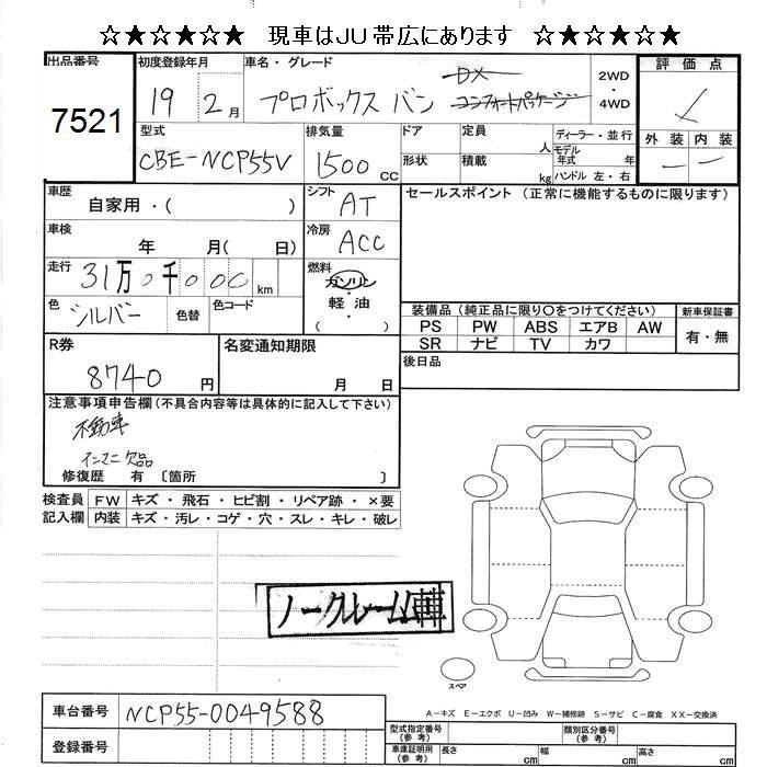 TOYOTA PROBOX - лот 7521