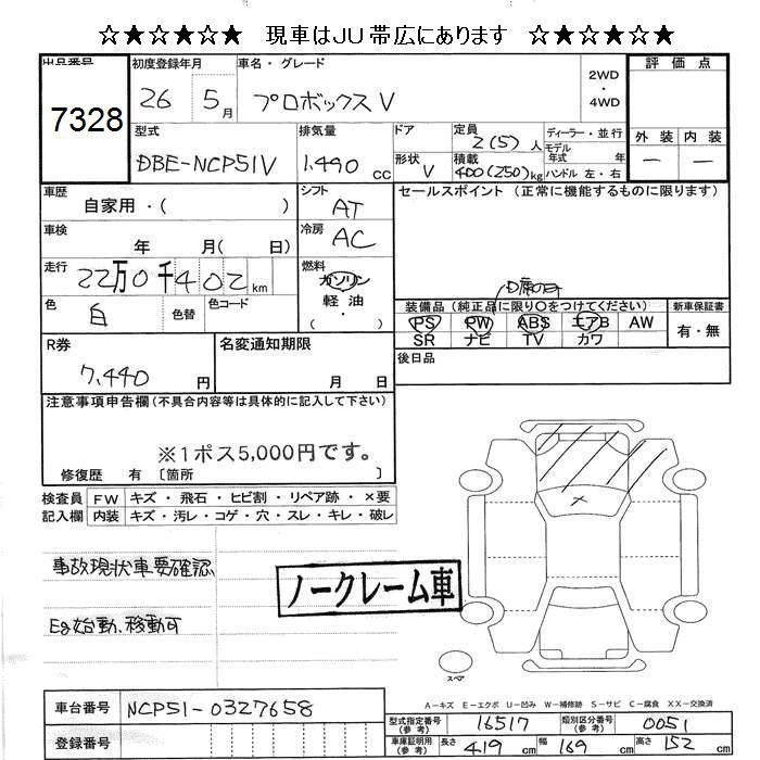 TOYOTA PROBOX - лот 7328