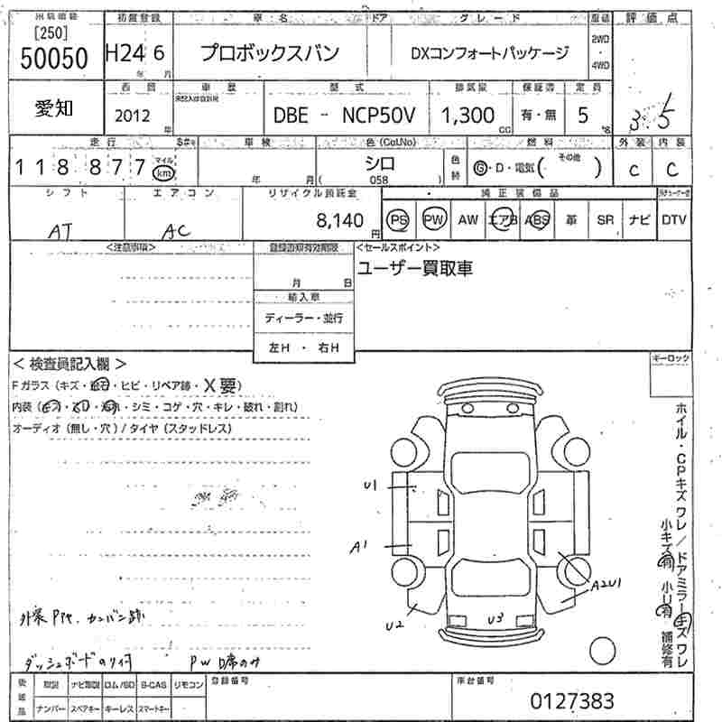 TOYOTA PROBOX DX COMFORT PACKAGE - лот 50050