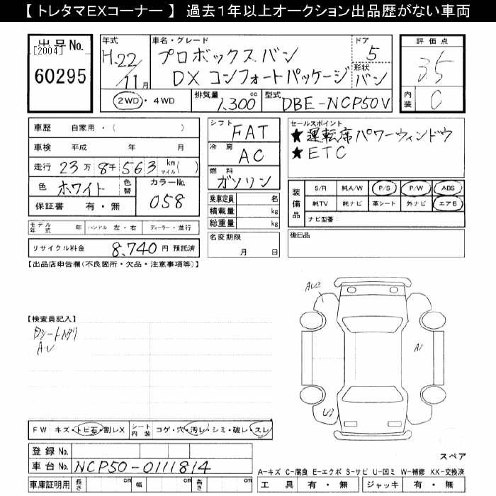 TOYOTA PROBOX DX COMFORT PACKAGE - лот 60295
