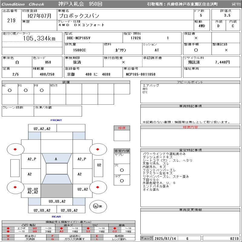 TOYOTA PROBOX 4WD DX COMFORT - лот 219