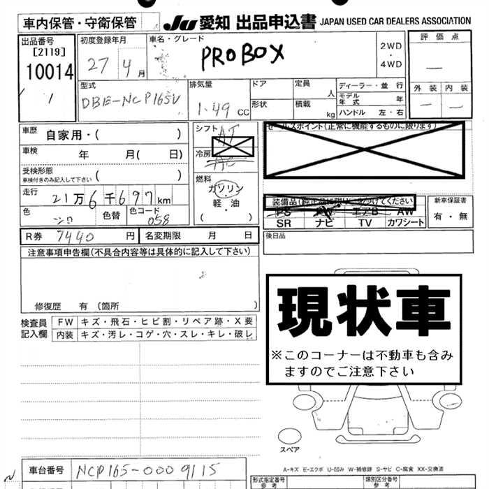 TOYOTA PROBOX - лот 10014