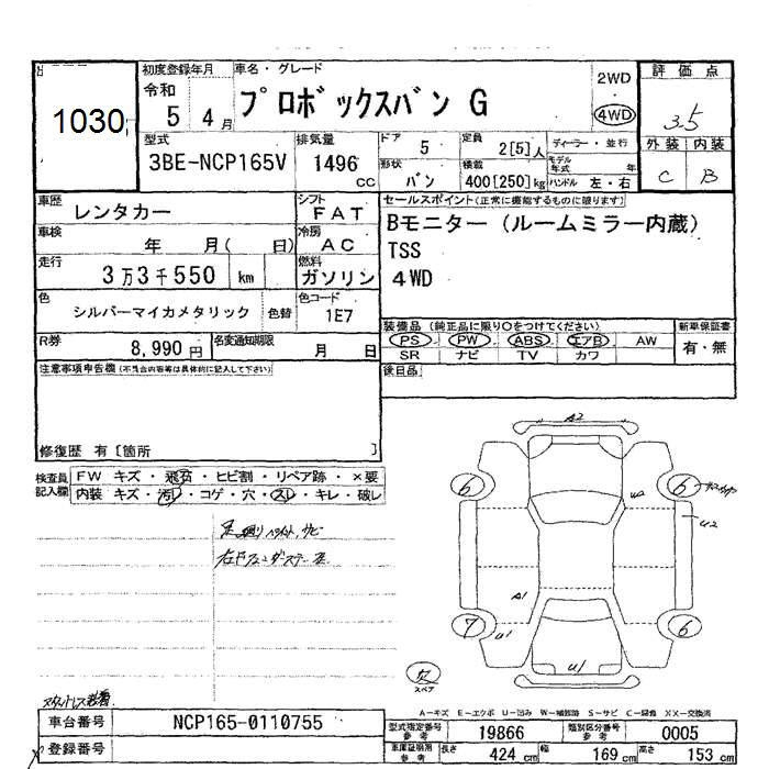 TOYOTA PROBOX 4WD G - лот 1030