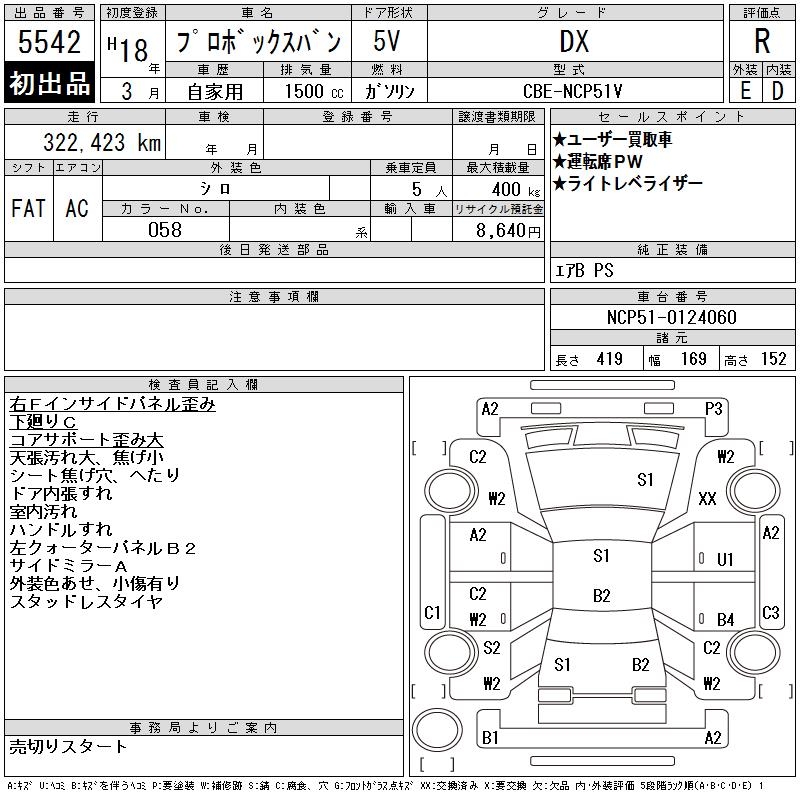 TOYOTA PROBOX DX - лот 5542