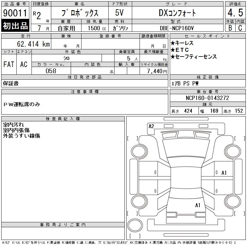 TOYOTA PROBOX DX COMFORT - лот 90011