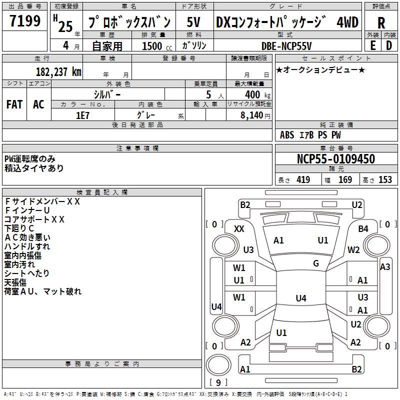 TOYOTA PROBOX DX COMFORT PACKAGE 4WD - лот 7199