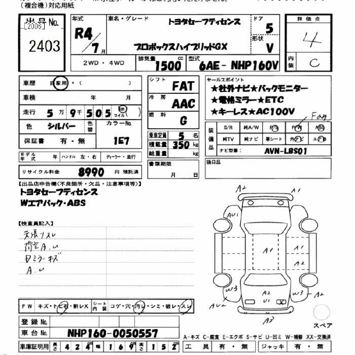 TOYOTA PROBOX HYBRID GX TOYOTA SAFETY SENS - лот 2403