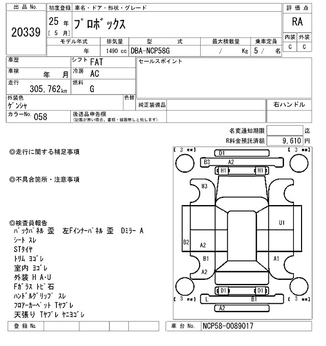 TOYOTA PROBOX - лот 20339