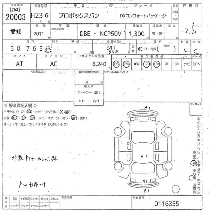 TOYOTA PROBOX DX COMFORT PACKAGE - лот 20003