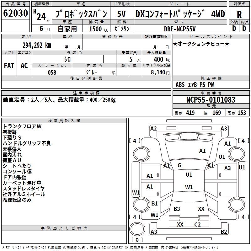 TOYOTA PROBOX DX COMFORT PACKAGE 4WD - лот 62030
