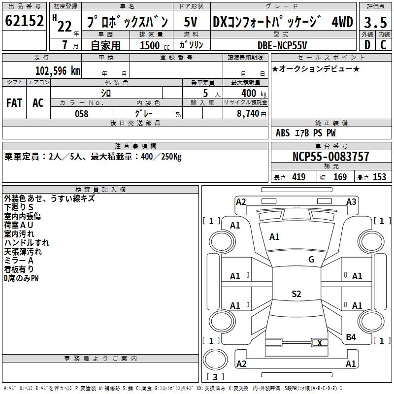 TOYOTA PROBOX DX COMFORT PACKAGE 4WD - лот 62152