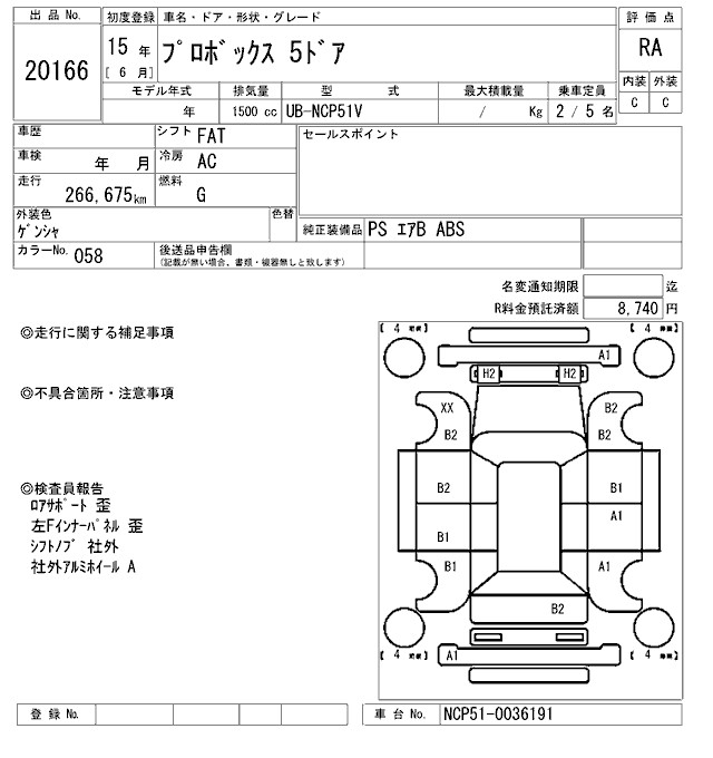 TOYOTA PROBOX - лот 20166