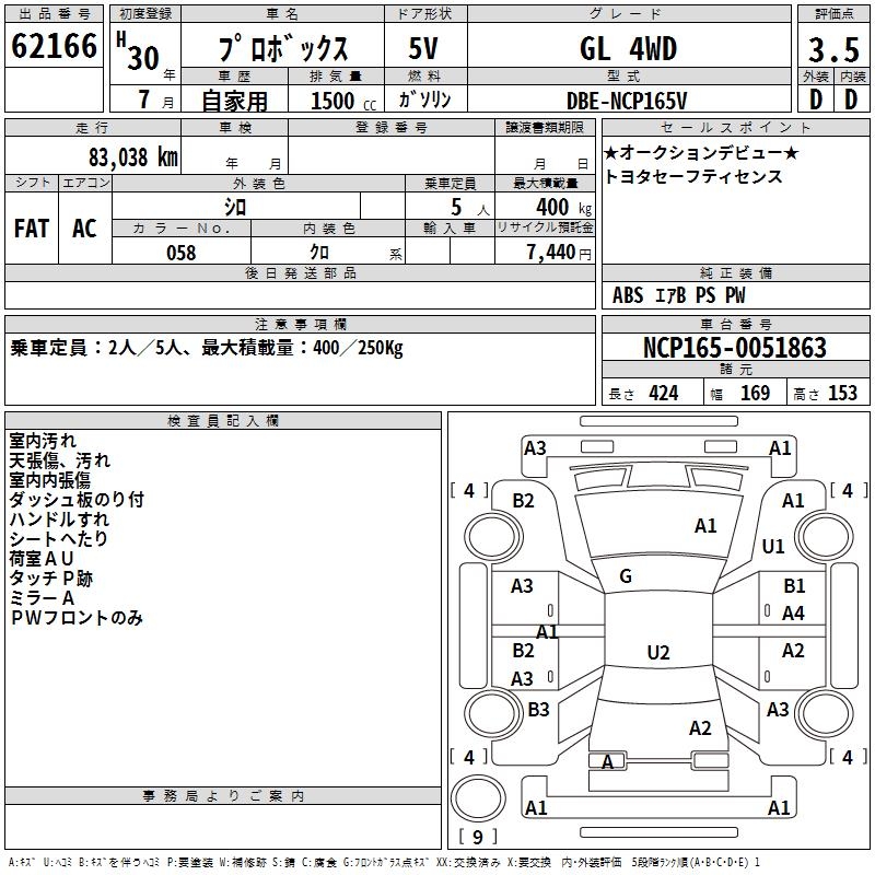 TOYOTA PROBOX GL 4WD - лот 62166