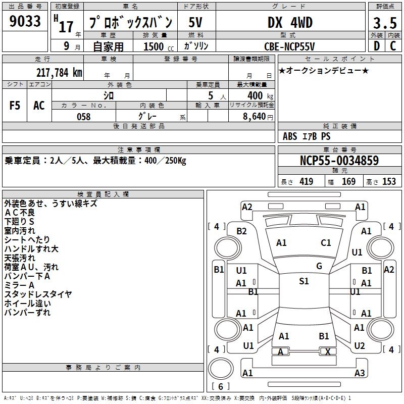 TOYOTA PROBOX DX 4WD - лот 9033