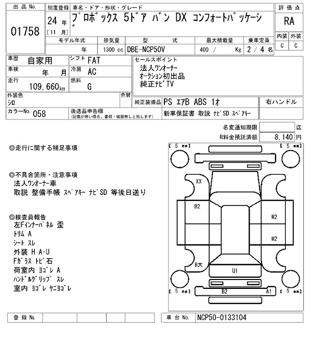 TOYOTA PROBOX DX COMFORT PACKAGE - лот 1758