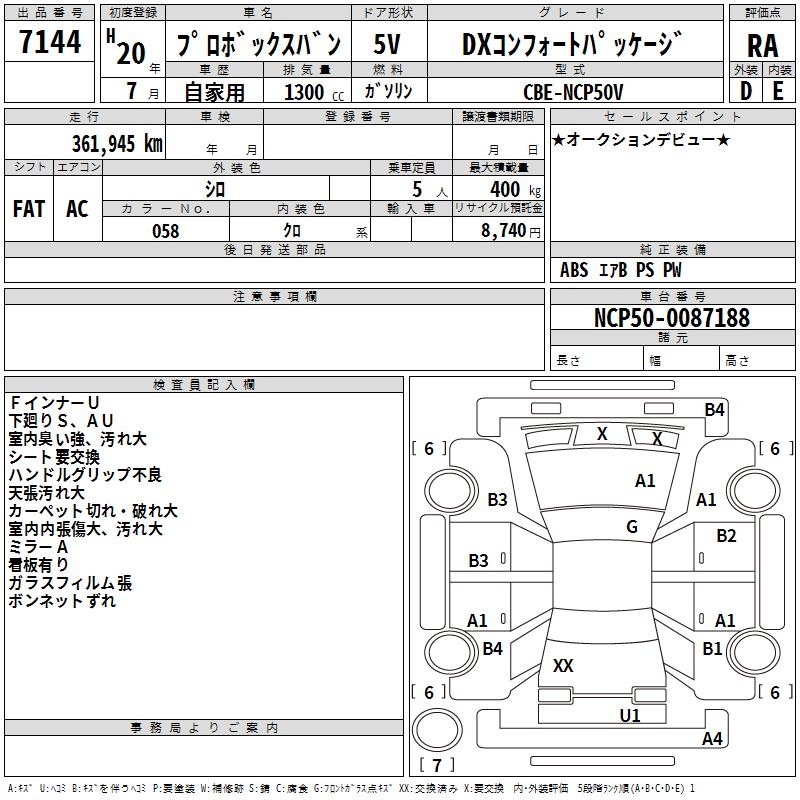 TOYOTA PROBOX DX COMFORT PACKAGE - лот 7144
