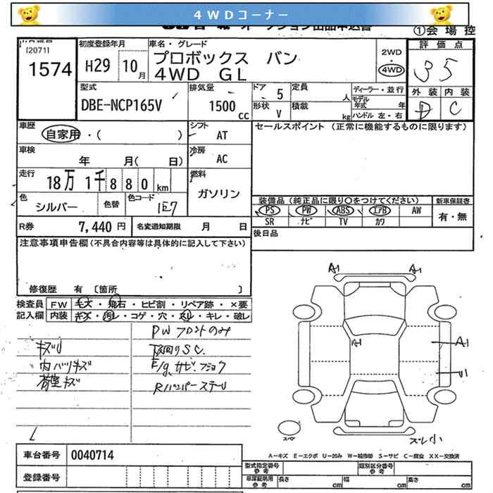 TOYOTA PROBOX 4WD GL - лот 1574