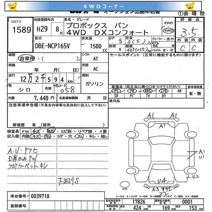 TOYOTA PROBOX 4WD DX COMFORT - лот 1589