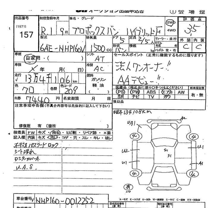 TOYOTA PROBOX HYBRID F - лот 157