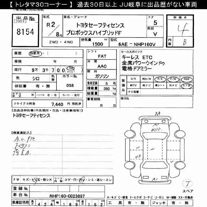 TOYOTA PROBOX HYBRID F TOYOTA SAFETY SENS - лот 8154
