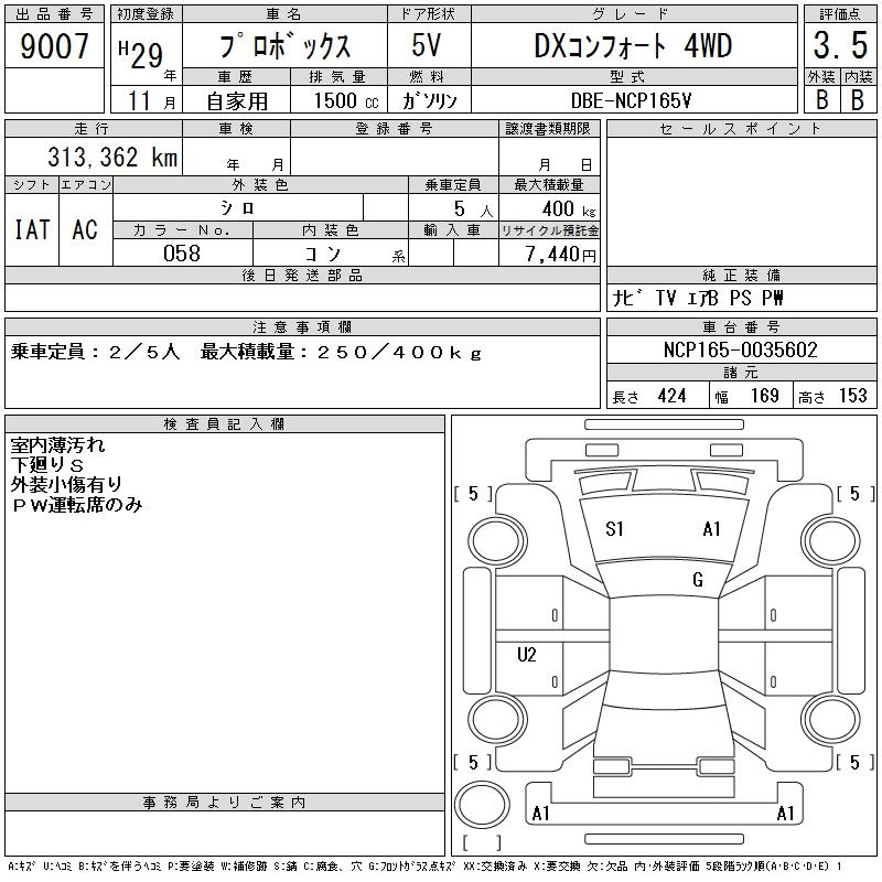 TOYOTA PROBOX DX COMFORT 4WD - лот 9007