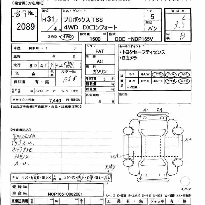 TOYOTA PROBOX 4WD DX COMFORT TSS - лот 2089